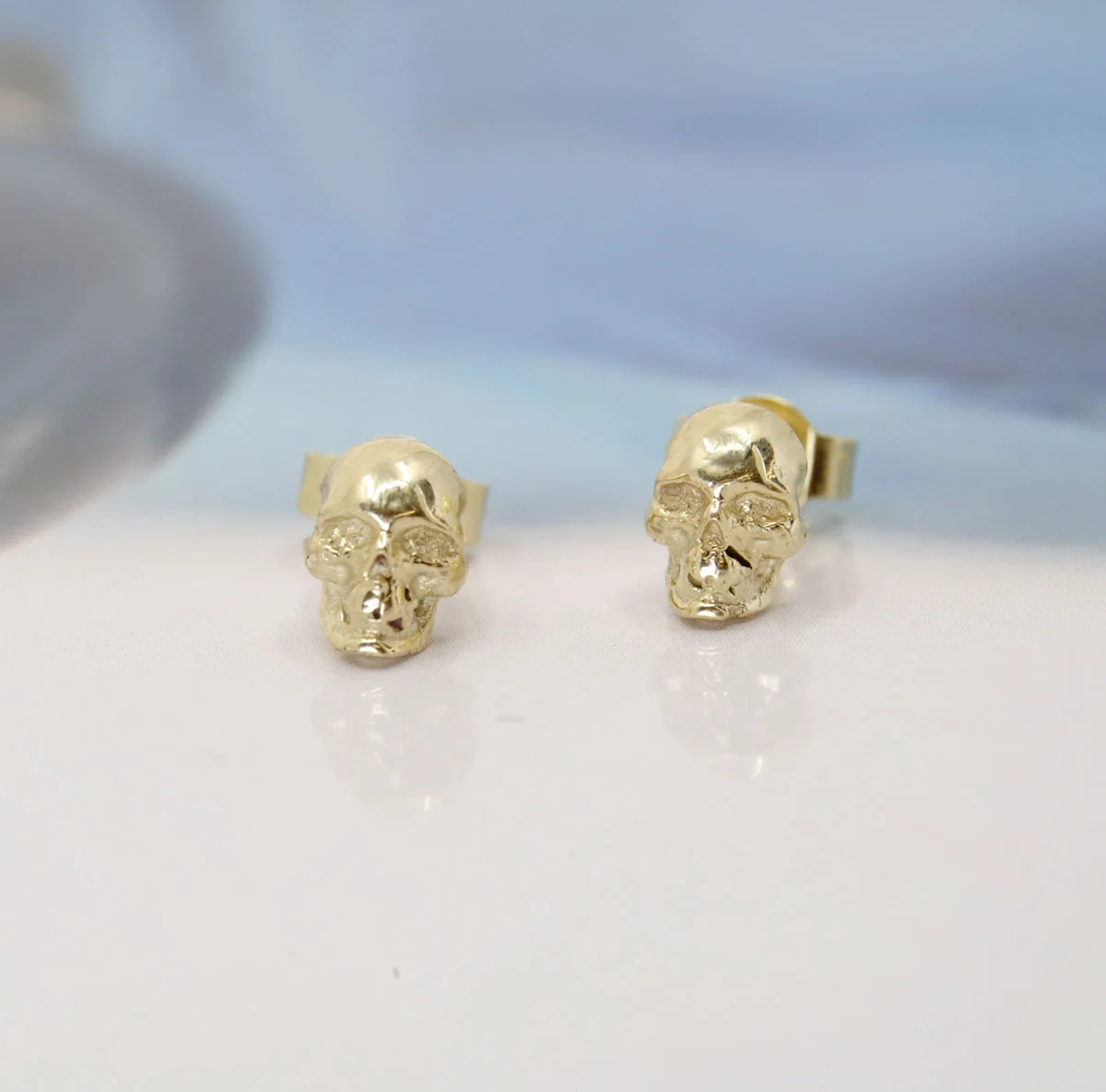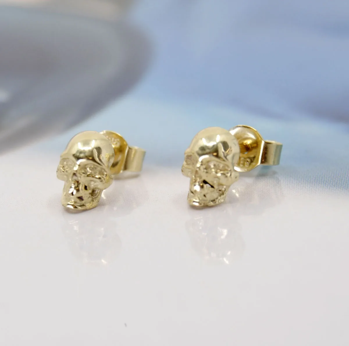 Deze schitterende oorknoppen met Skull of doodskop zijn gemaakt van 14 karaat geelgoud.