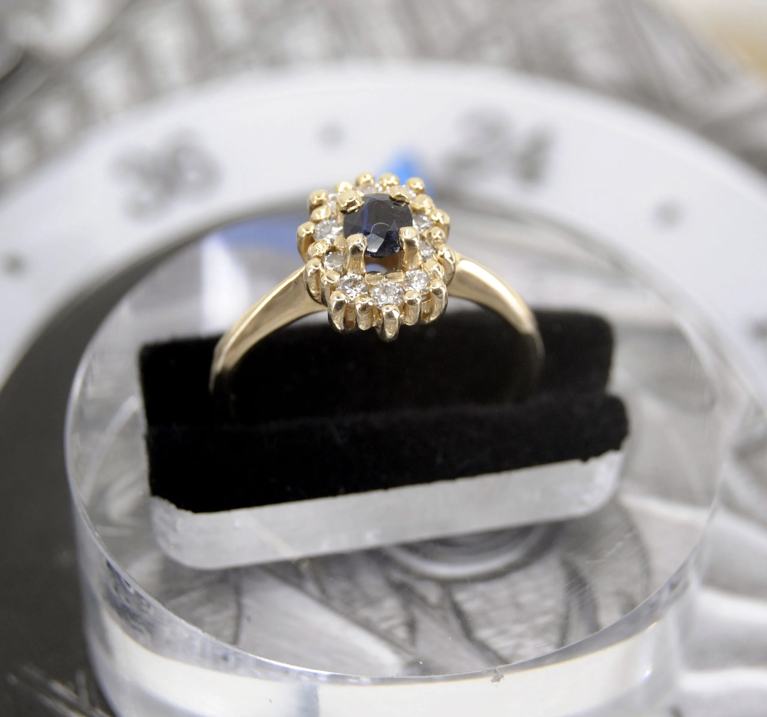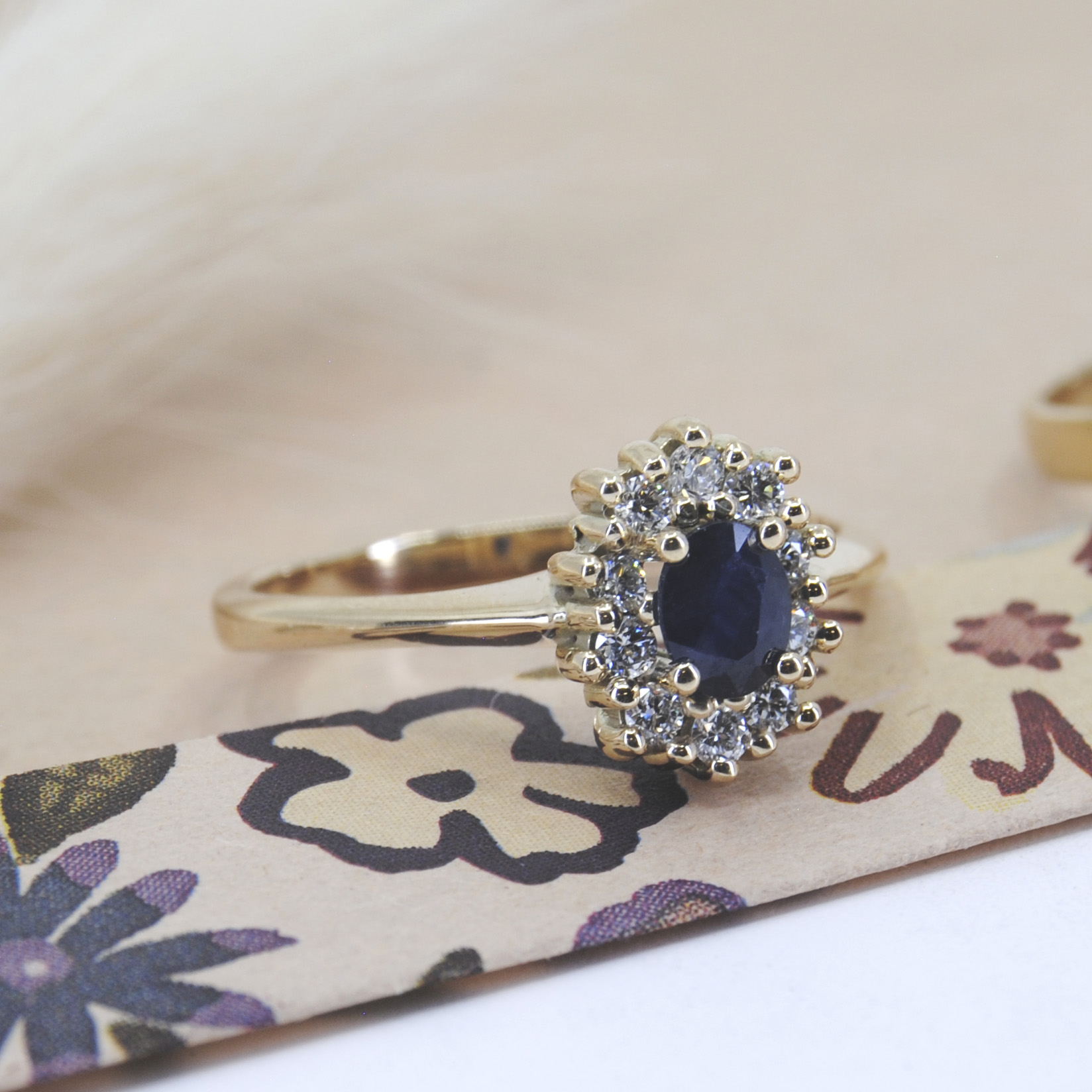 Geelgouden ring Diamant Saffier entourage ring Amiens