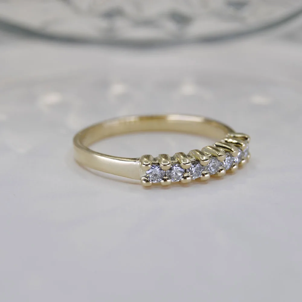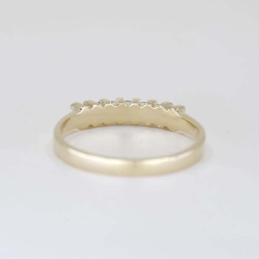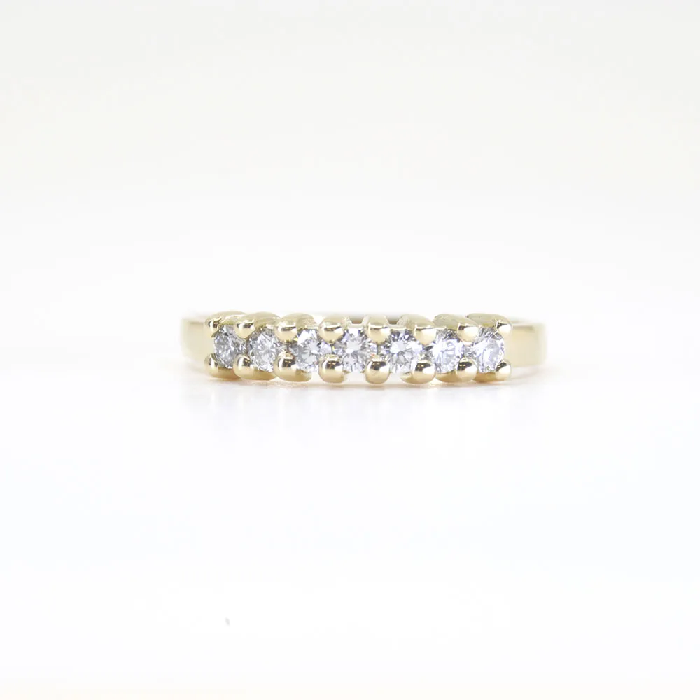 De rij van 7 schitterende labgrown Diamanten vormt het stralende middelpunt van deze ring, met een totaal gewicht van 0,35 karaat. Deze ethisch geproduceerde Diamanten schitteren met een ongeëvenaarde helderheid en schittering, waardoor ze een blijvende indruk achterlaten.