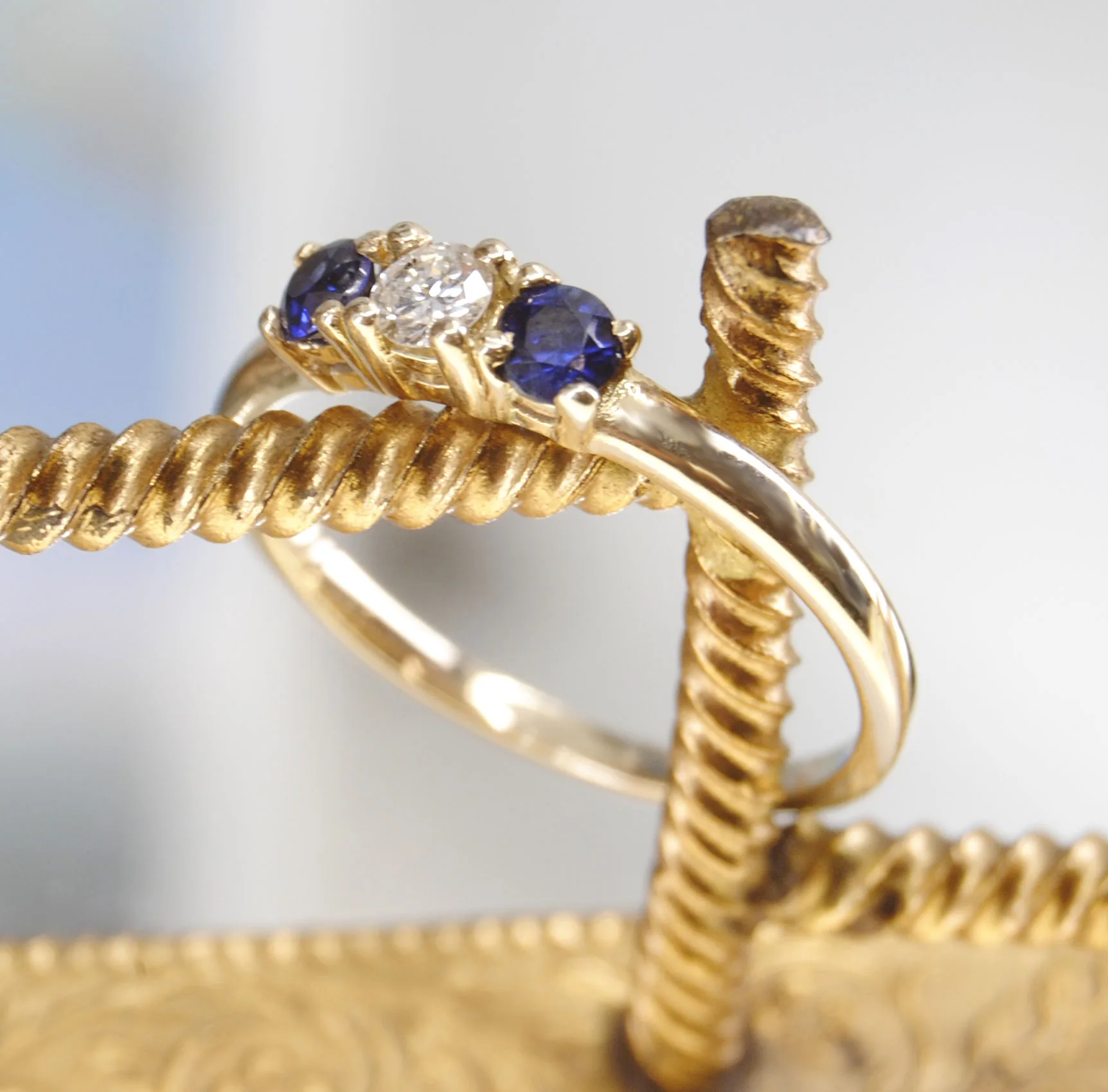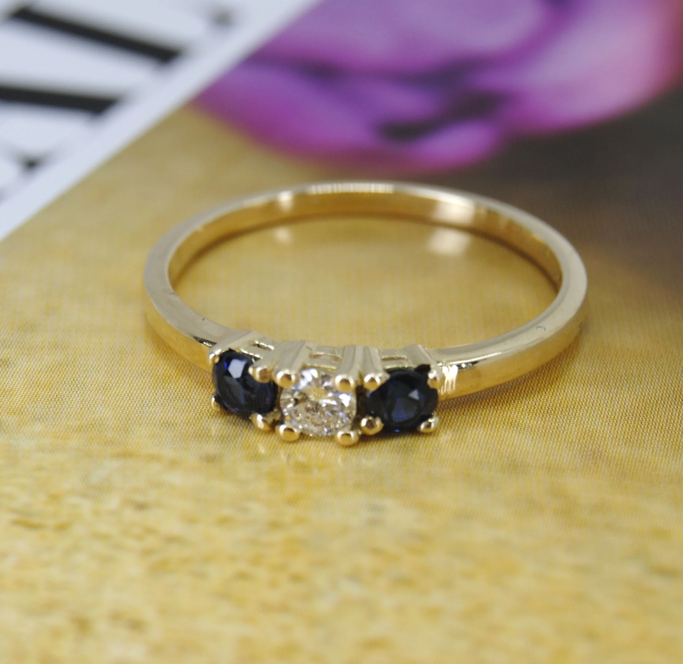 Gouden ring Brussel met rij saffier en diamant