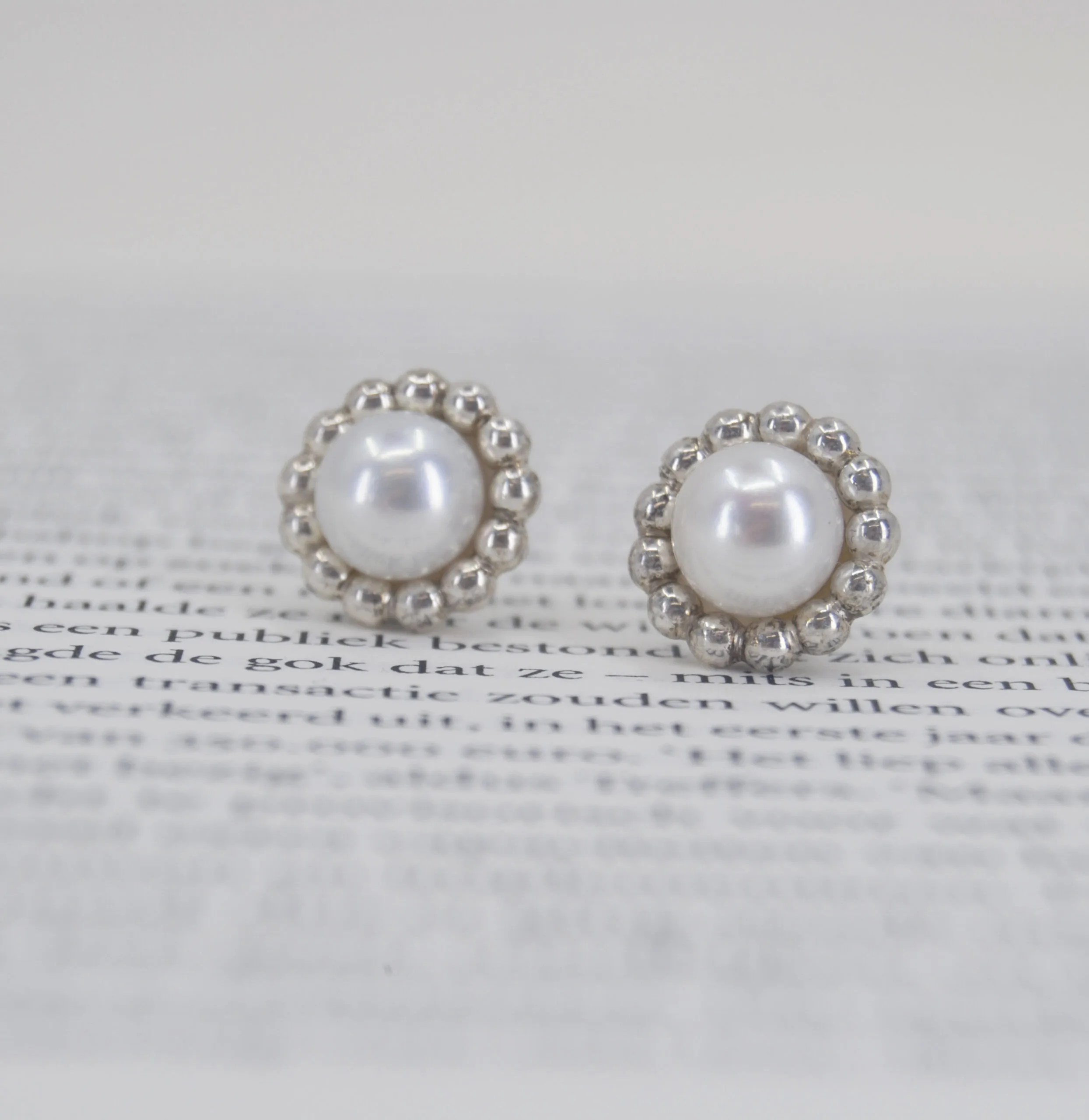 Zilveren oorknop met parel