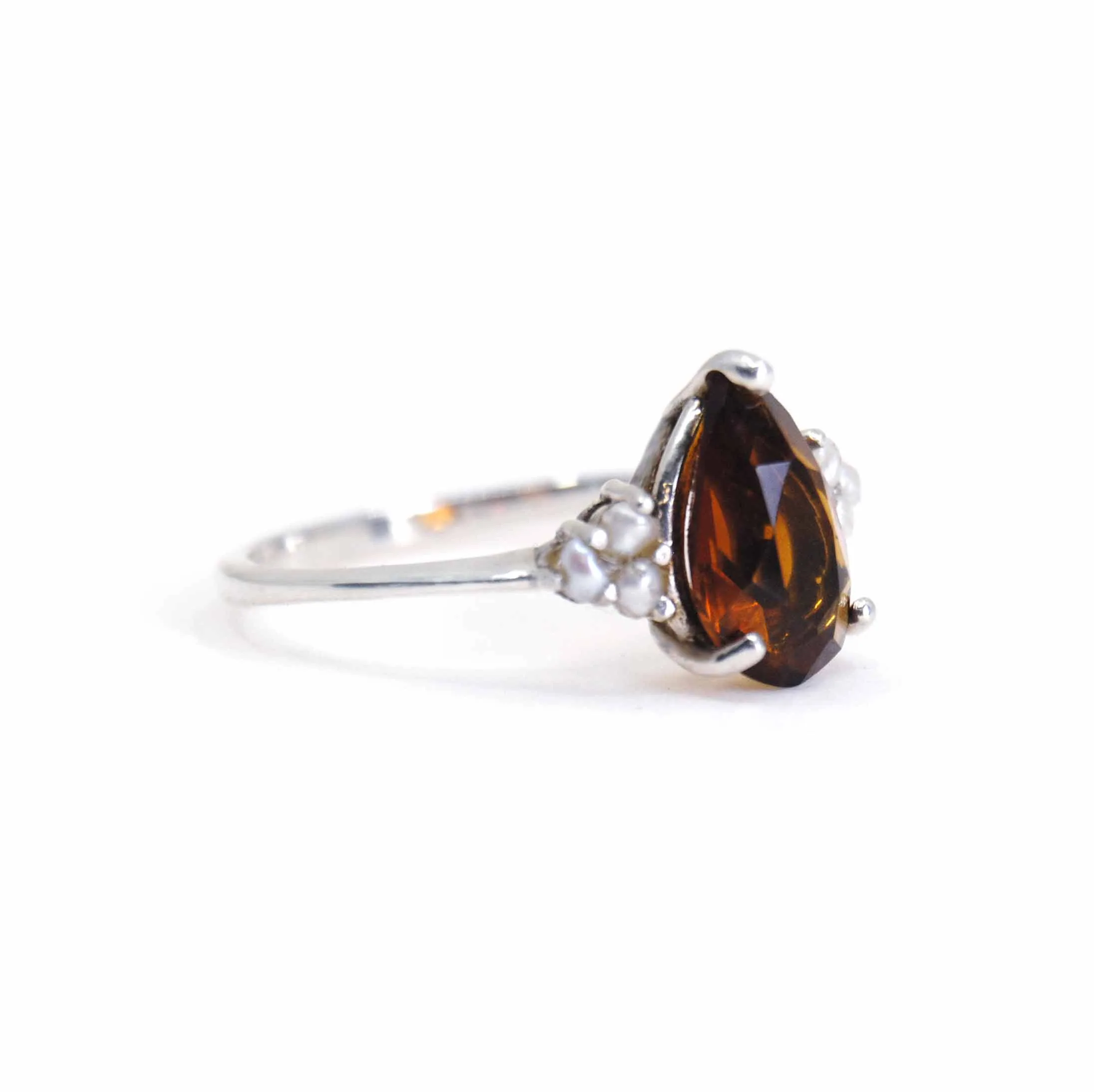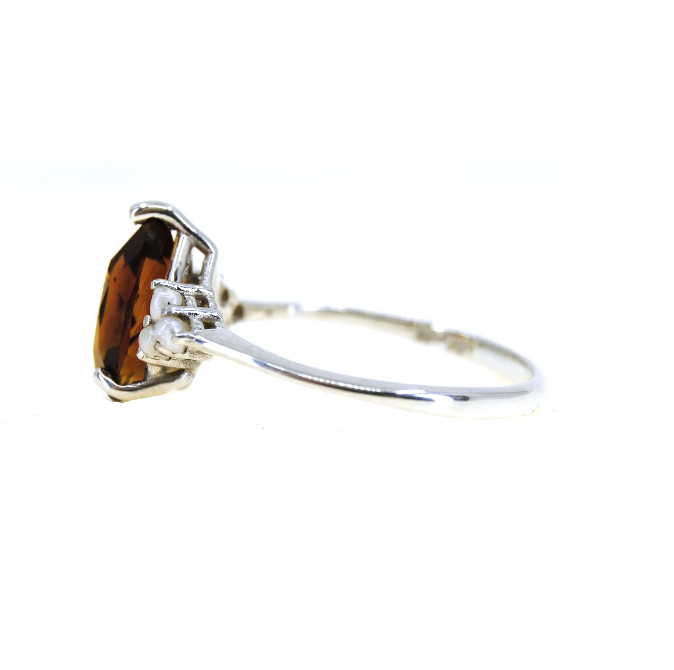 Zilveren ring met citrien en parels