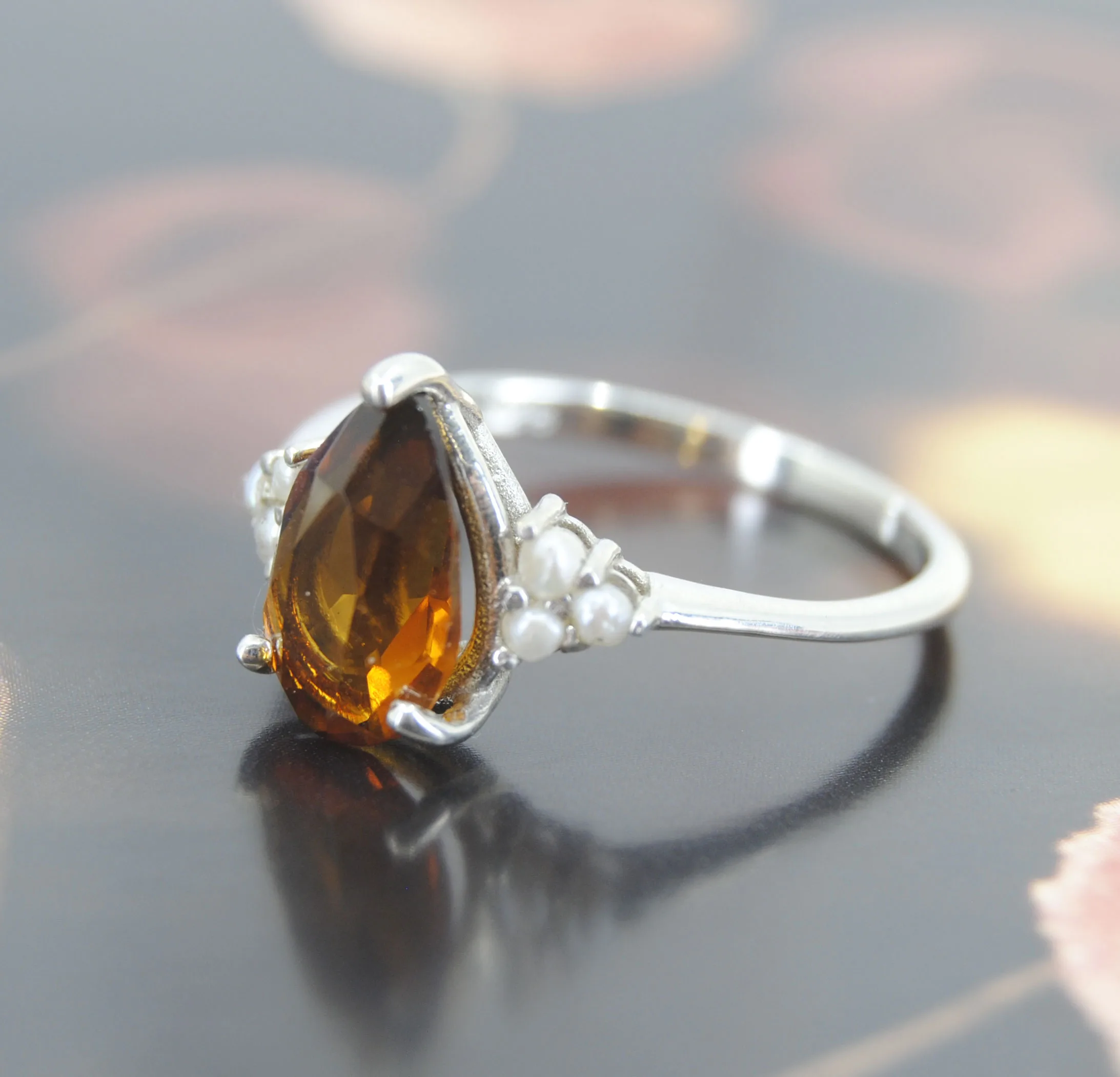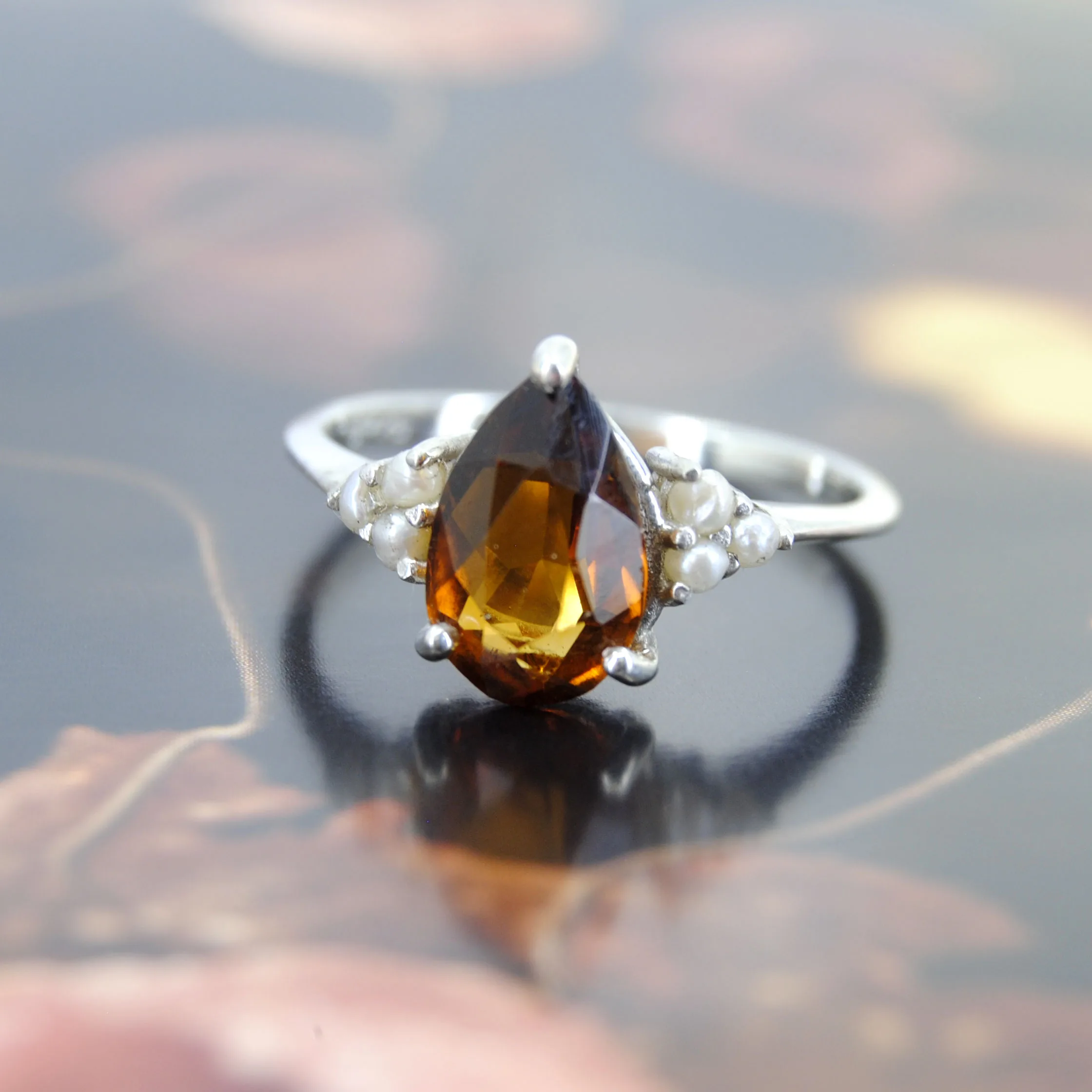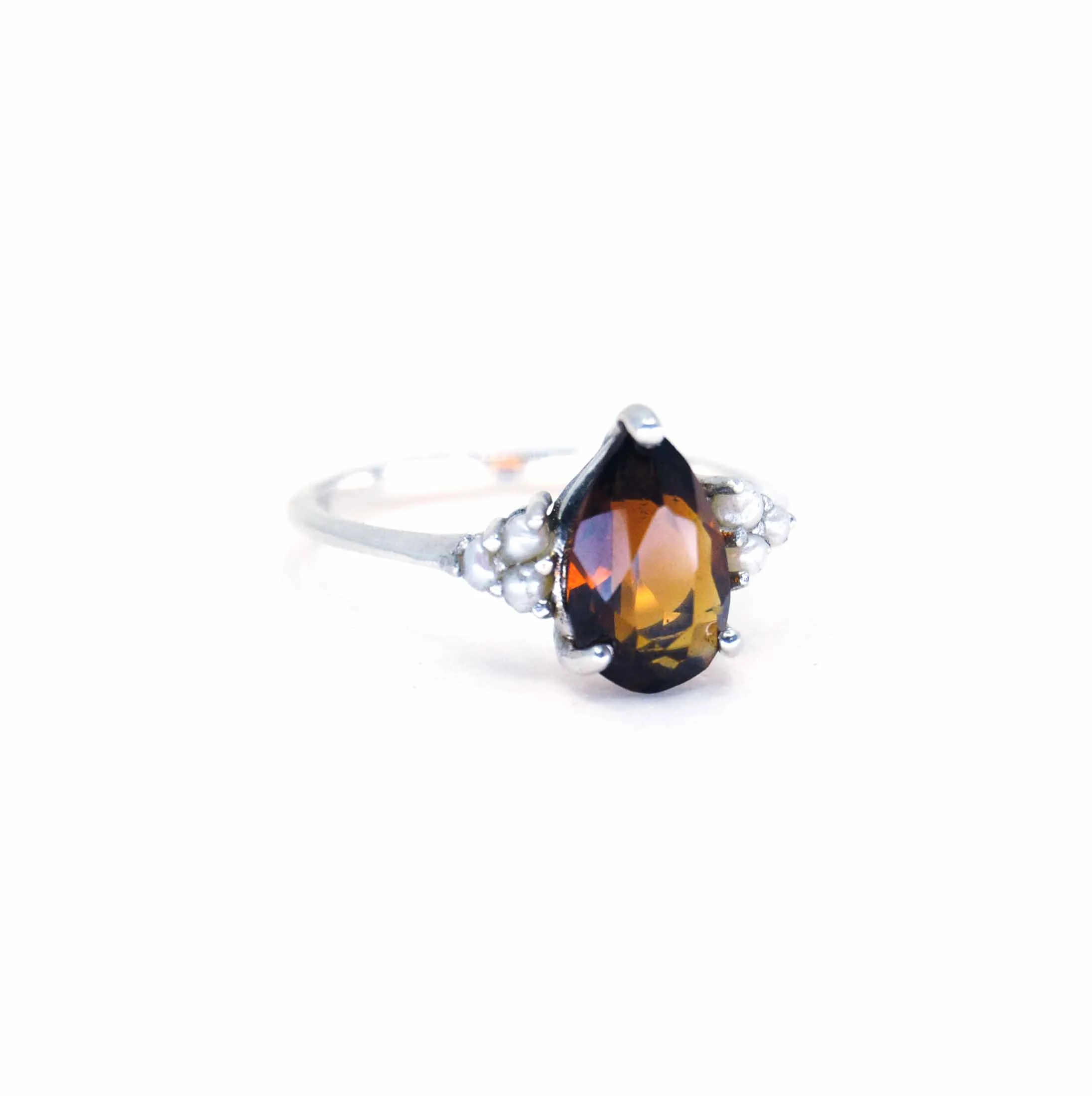 Zilveren ring met Citrien en Parels